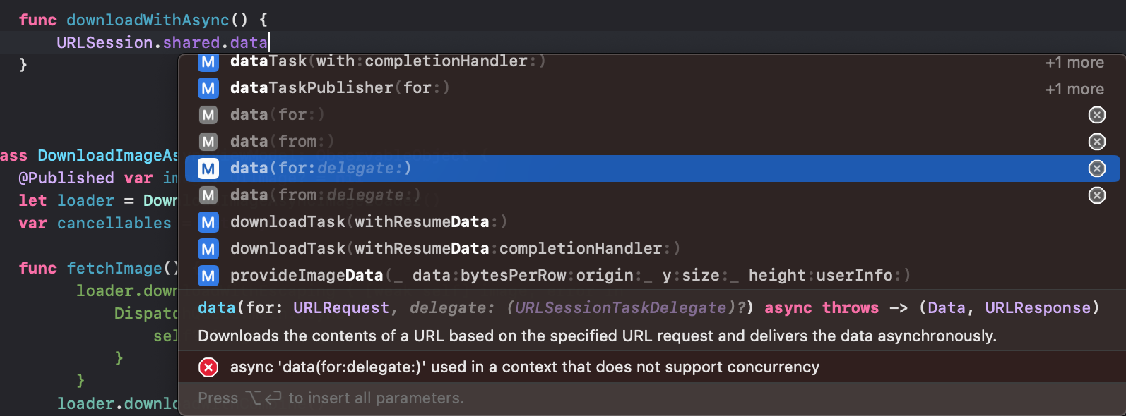 URLSession.shared.data로 initialize가능한 애들 보다보면 gray색으로 지금 당장은 안되는 구문이 있음!
