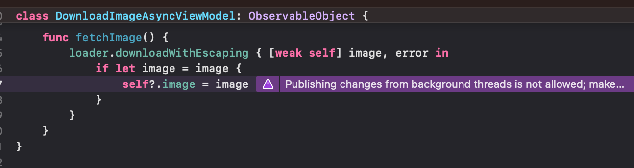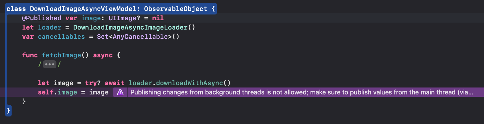 뷰모델로 와서 방금 만든 메소드를 쓰려고하면 마찬가지로 concurrency를 지원하지 않는 context에 있다고 뜸