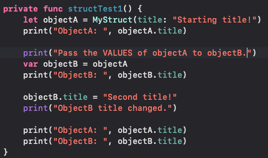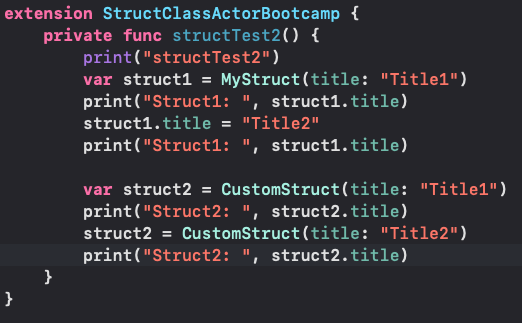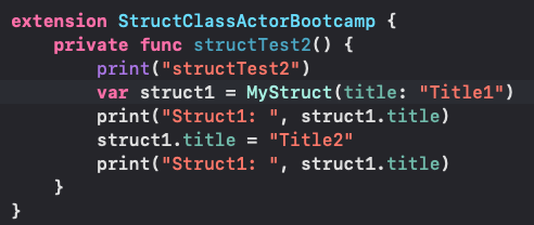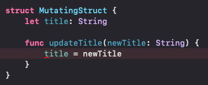 structTest2()를 만들었는데 struct1을 let으로 선언하면 에러가 뜸