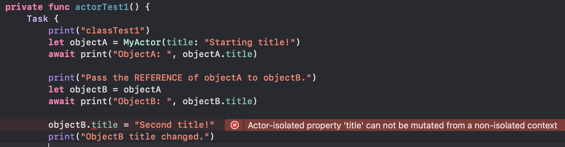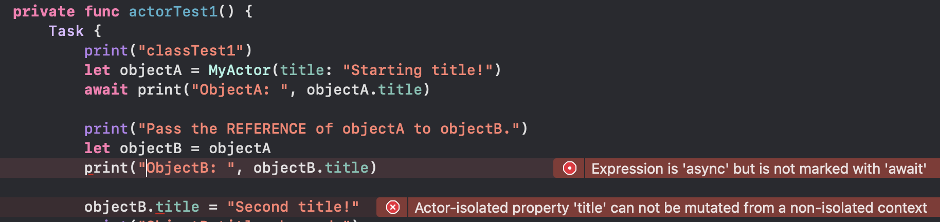 await 다붙여주고나면 외부에서 actor를 수정할 수 없다는 에러가 나옴!