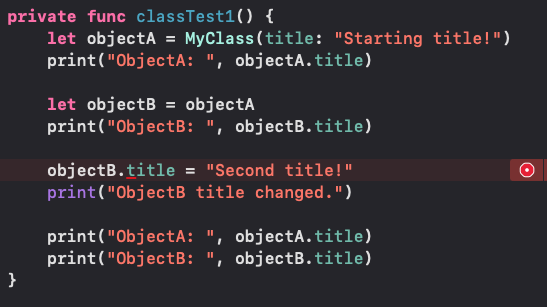 근데 fix를 누르면 struct를 할 때처럼 objectB를 변수로 바꾸는 게 아니라, class내의 프로퍼티 자체를 var로 바꿔주고