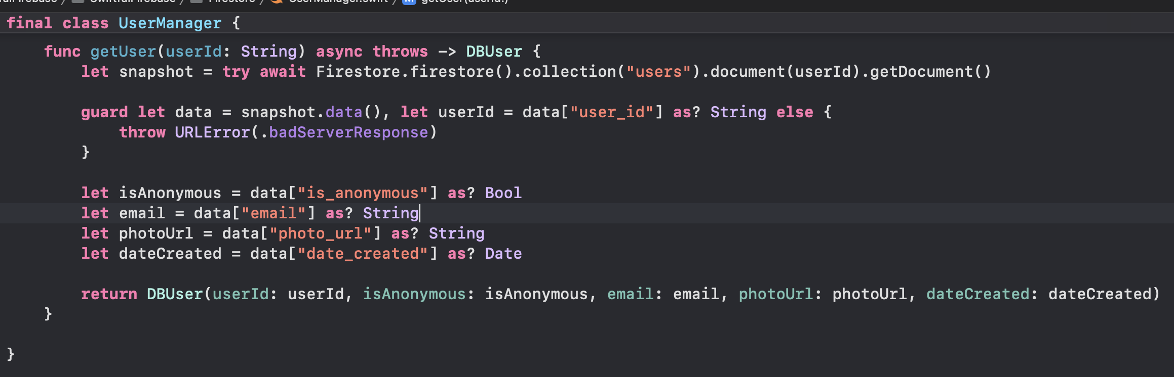 try await Firestore.firestore().collection("users").document(auth.uid).setData(userData, merge: false)