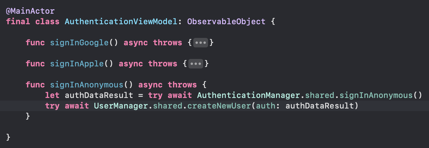 func createNewUser(auth: AuthDataResultModel) async throws {