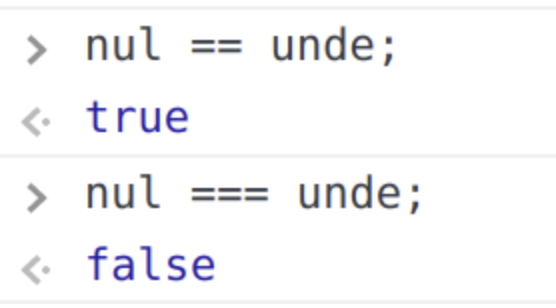 value === value2; // false == 연산자로 같은지 확인 해 보면 true를 반환하지만 엄밀히 따지면 null의 자료형은 object이고 undefined는 undefined이기 때문에 ===로 확인 해 보면 false를 반환한다.