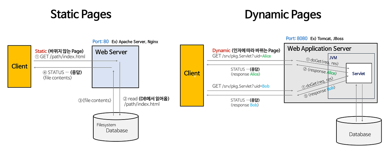 웹 서비스를 이해하기 위해서는 먼저 정적 페이지, 동적 페이지의 개념을 이해할 필요가 있습니다.