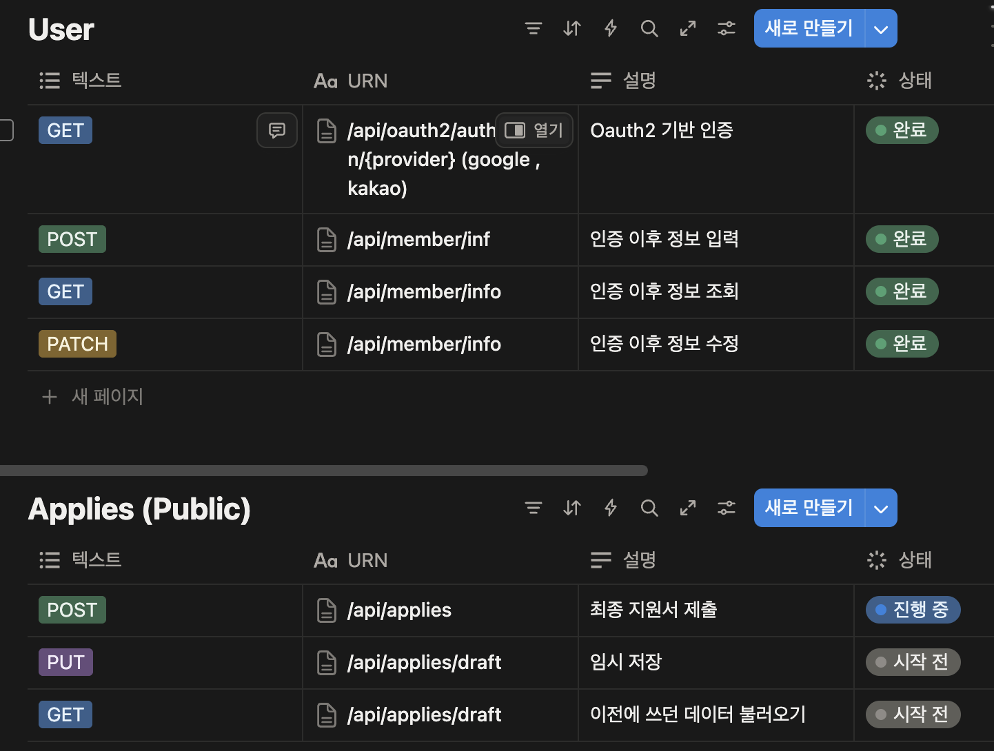 사실상 개발자와의 협업에 가장 깊게 중심을 둔 지점이다. 개발에 있어서 API 명세서는 필수적이다. 명세서를 디자인하지 않고 진행하게 되면 협업 자체가 굉장히 버거워진다. 그래서 최대한 명확하게 필요한 정보를 작성하는 것이 중요하다.