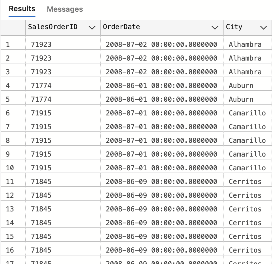 - ‘United States’에서 들어온 주문건의 주문번호, 주문일자, 도시명(오름차순)
