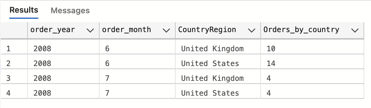 group by CountryRegion;