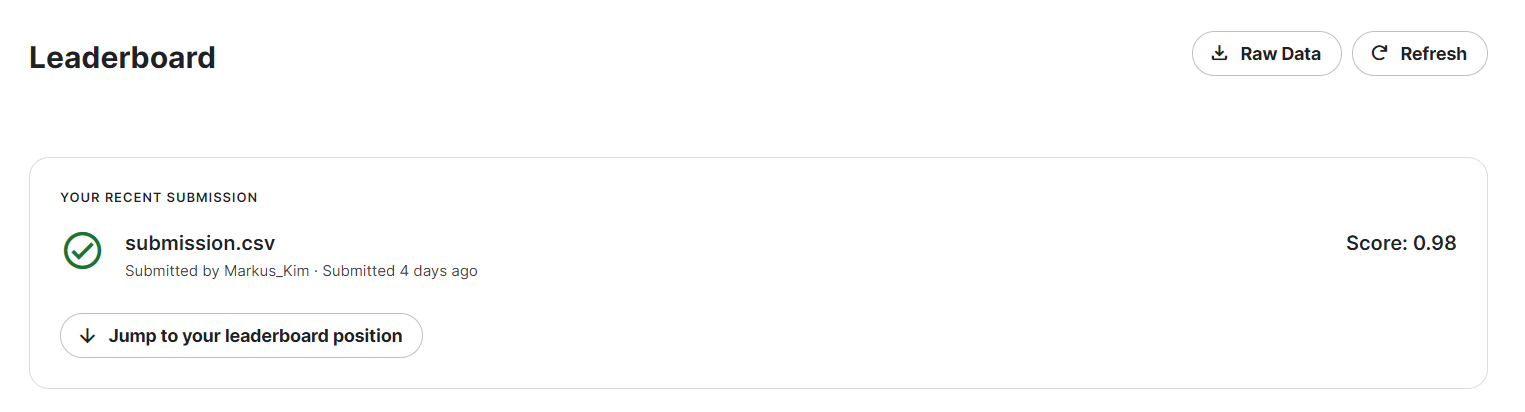 학습이 완료되면 테스트 셋으로 학습을 시켜주고 결과를 submisson에다가 기입한뒤 제출 하면 kaggle 제출 완료