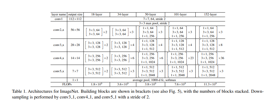 - 논문을 작성할 당시의 컴퓨팅 성능을 고려하면 50-layer부터 적용이 된것을 확인가능