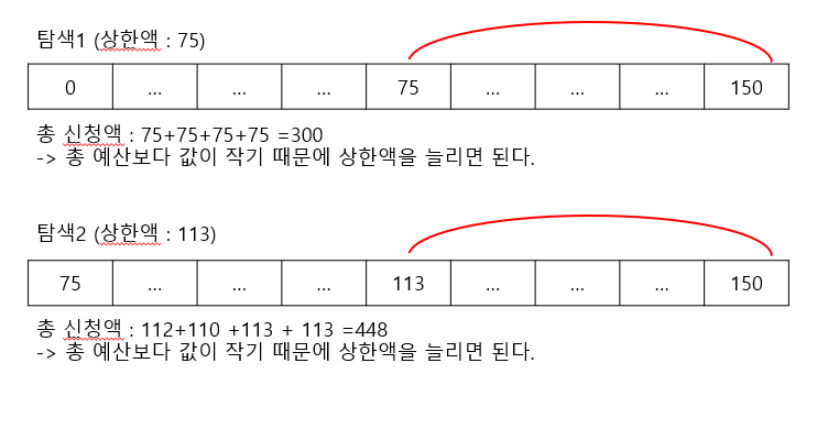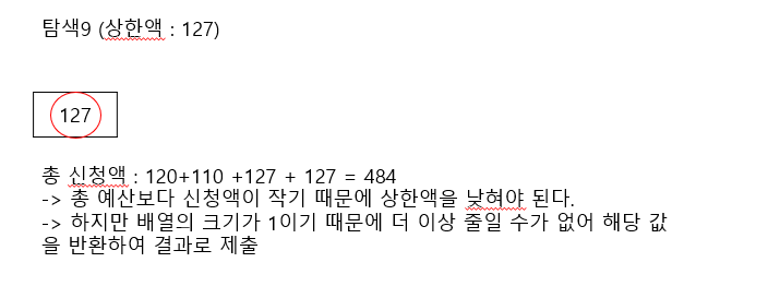 - 상한액 리스트의 크기가 1이 될때까지 이진 탐색을 진행하여 결과값 추출