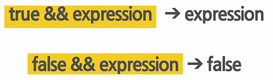 조건문이 true 이면 오른쪽 엘리먼트가 결과 값 false 이면 false 가 나온다.