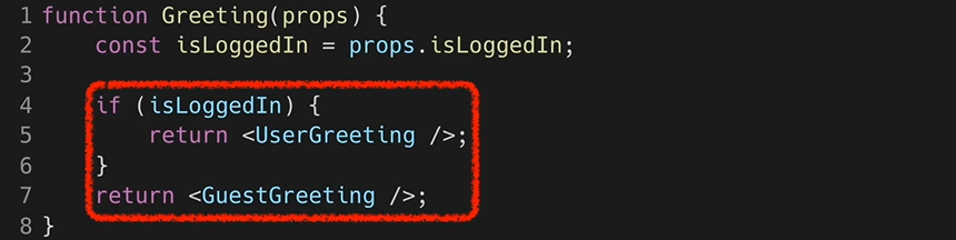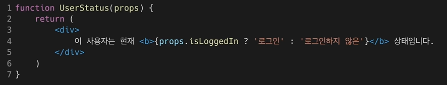 삼항연산자를 이용하여 isLoggedIn 의 값에 따라 다른 출력을 한다.