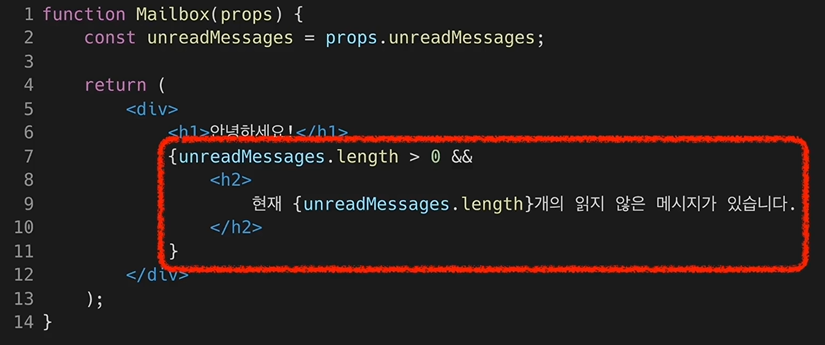 단축 연산에 의해 0보다 큰 경우에만 오른쪽 부분이 렌더링 된다.