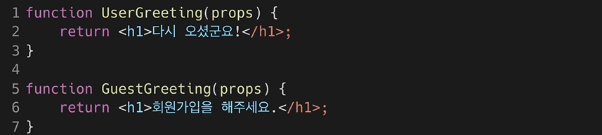 isLoggedIn 이 참 거짓에 따라 다른 컴포넌트가 출력되도록 함 (렌더링 되도록 함)