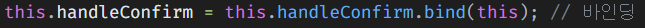 this.handleConfirm = this.handleConfirm.bind(this); // 바인딩