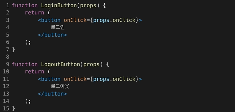 사용자의 로그인 여부에 따라 앞에 나온 로그인 버튼과 로그아웃 버튼 컴포넌트를 선택적으로 보여준다.