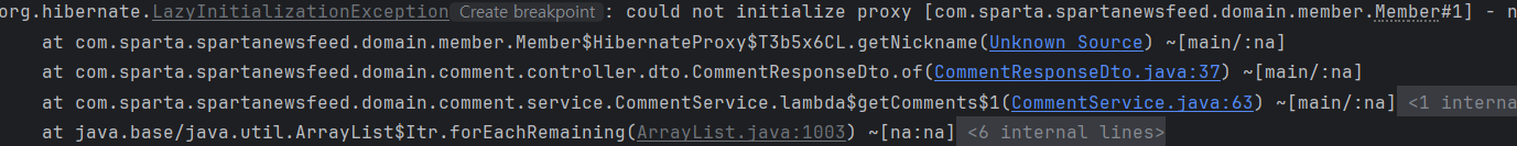 LAZY즉 지연 로딩을 이용하기 때문에 위 오류가 발생할 수 있는 것이다.