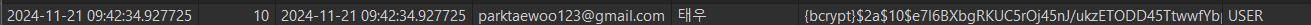 기존의 회원의 비밀번호는 기존있던 인코더 방식을 암호화 되었기 때문에 새로운 회원을 등록하고 해당 회원을 통해 로그인 해보기로 하였다.