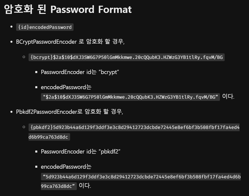 => 한 블로그에서 보기를 spring security 5.0 이상부터는 passwordEncoder 가 delegating 패턴 즉