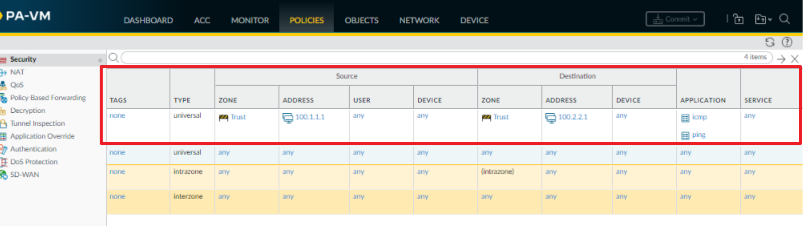 Finally, to ensure that traffic flows properly through the firewall, add a security policy.