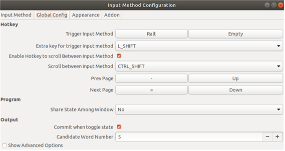 6) Global Config 탭으로 이동하고 Trigger Imput Method에 첫 번째 칸을 눌러 원하는 키 선택