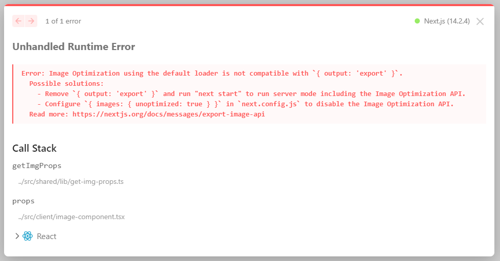이미지 최적화 기능을 사용하려고 할 때 다음과 같은 에러가 발생할 수 있습니다.