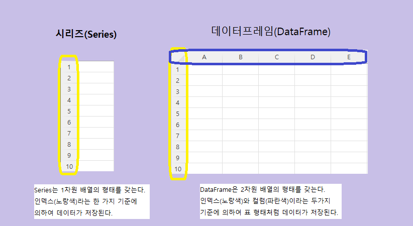 - 엑셀같은 기능을 제공하는 파이썬 모듈이라고 생각하면 이해가 쉽다.