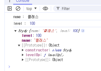 // 2-1. name, level 메소드를 생성해서 써먹을거임