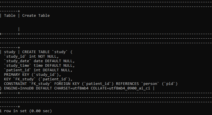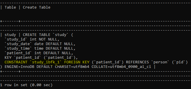 -> add constraint FK_study foreign key (patient_id) references person (pid);