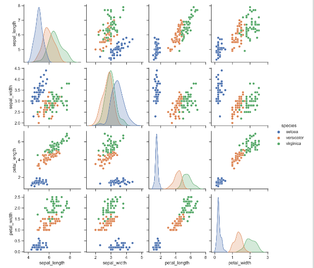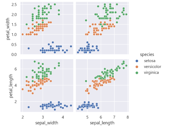 - sepal_length 와 petal_length 또한 양의 상관관계가 있어 보임