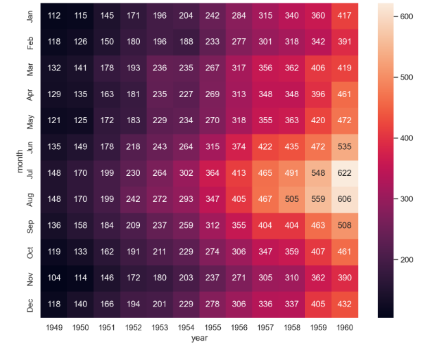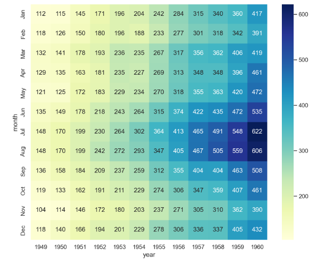 - 또한 연도별로 여름에 승객 수가 많은 경향을 보임