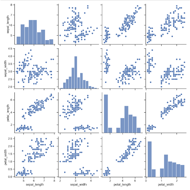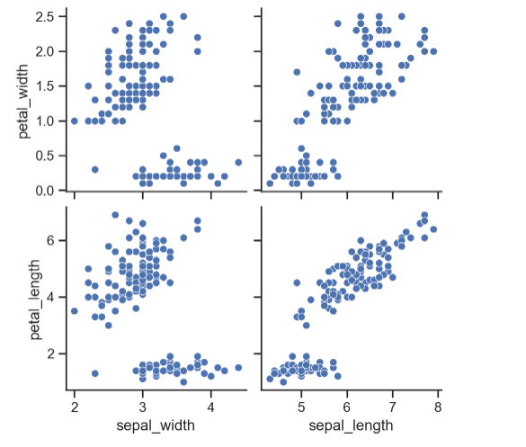 - sepal_length 와 petal_width 는 양의 상관관계가 있어 보임