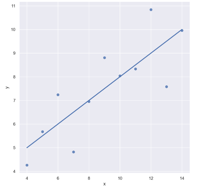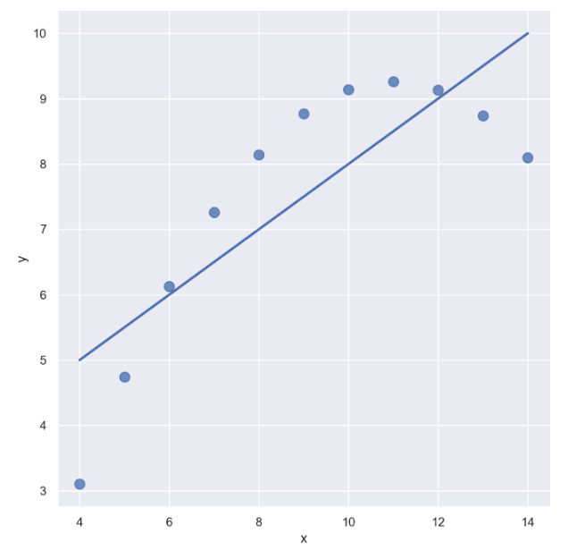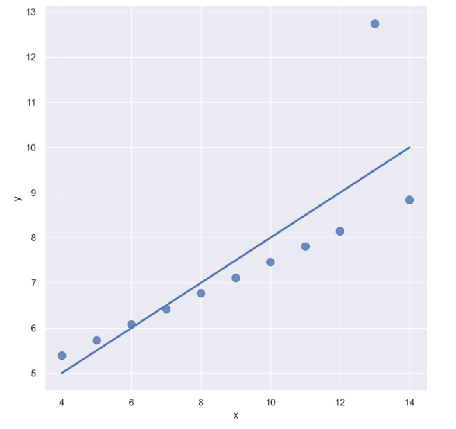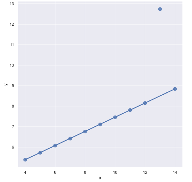 data=anscombe.query("dataset == 'III'"), # 아웃라이어 있는 데이터