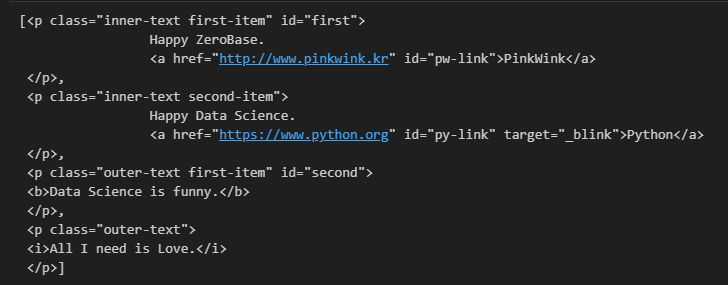 p 태그 리스트에서 텍스트 속성만 출력