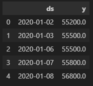 df = pd.DataFrame({"ds": SAM_trunc.index, "y":SAM_trunc["Close"]})