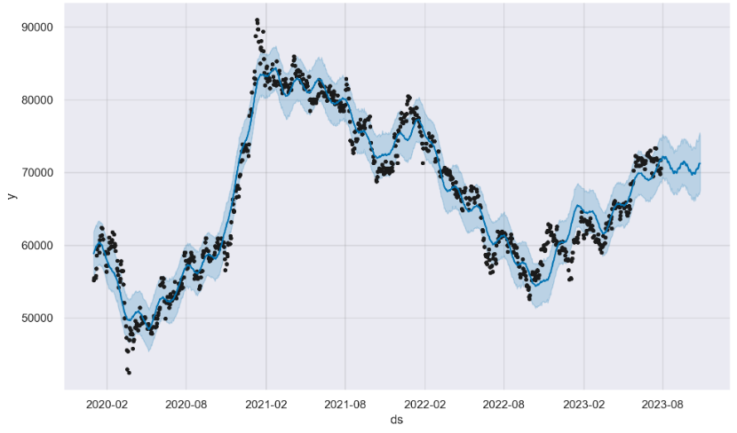 (참고로 2020년 1월 1일부터 2023년 7월 31일까지의 데이터를 토대로 10월달까지의 데이터를 예측하였다.)