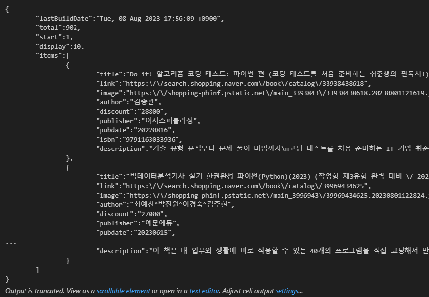 url = "https://openapi.naver.com/v1/search/book?query=" + encText