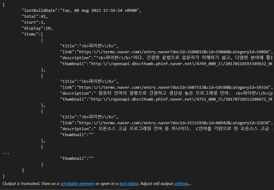 url = "https://openapi.naver.com/v1/search/encyc?query=" + encText # json 결과