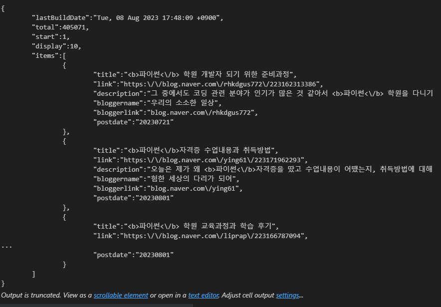 url = "https://openapi.naver.com/v1/search/blog?query=" + encText