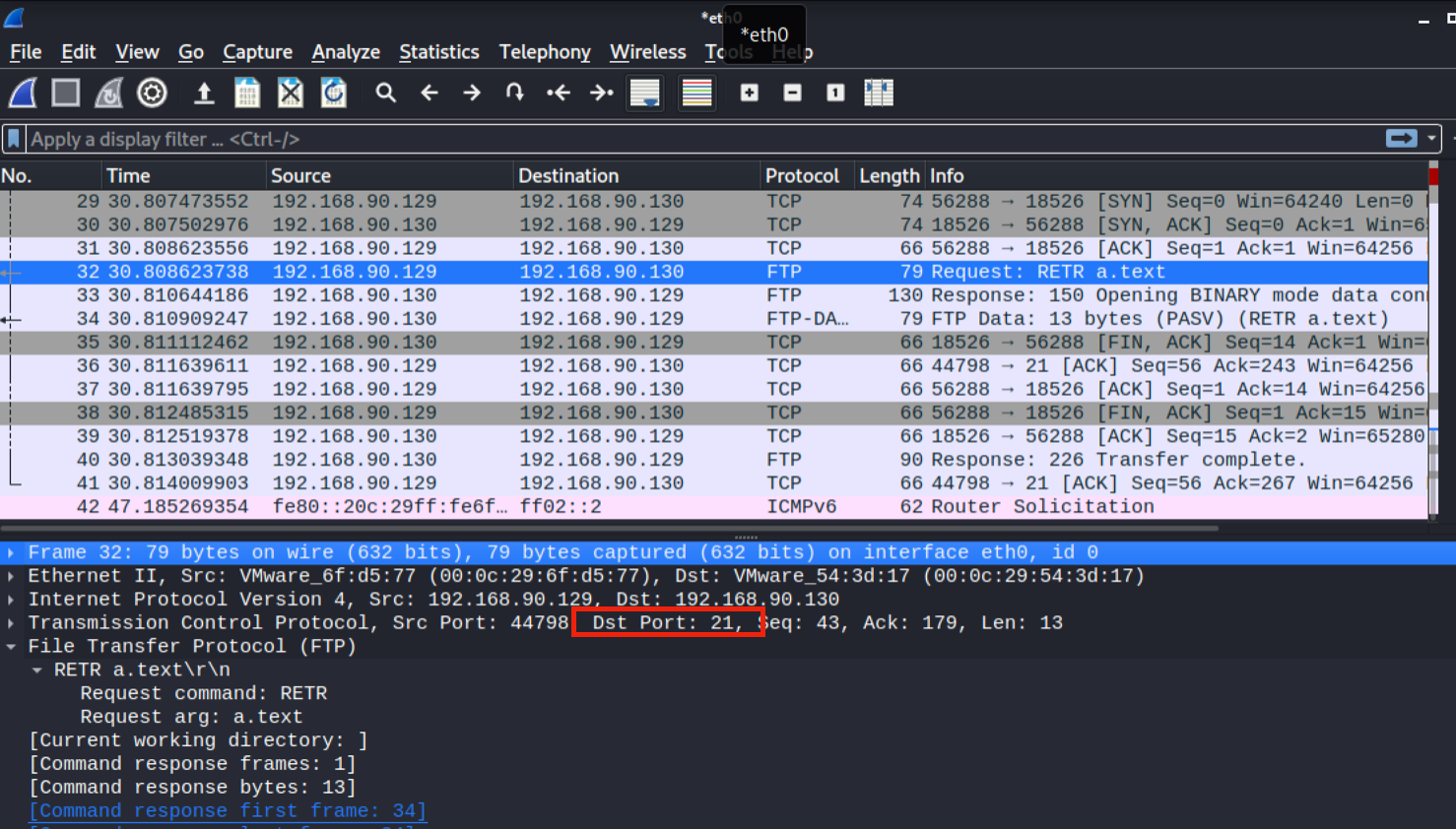 클라이언트가 get 명령을 21번 포트로 서버에 전달