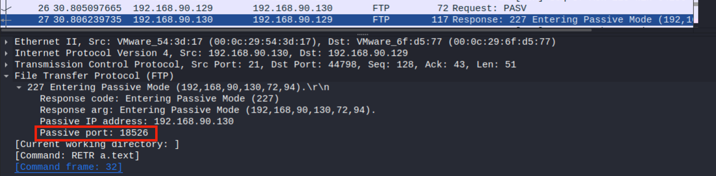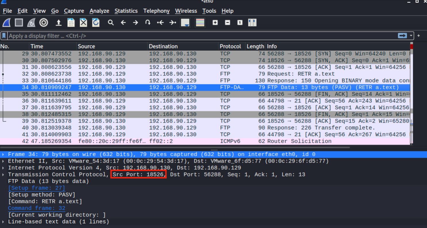 FTP 서버는 수신 받은 데이터 포트(18526)을 선택하여 클라이언트에게 전달