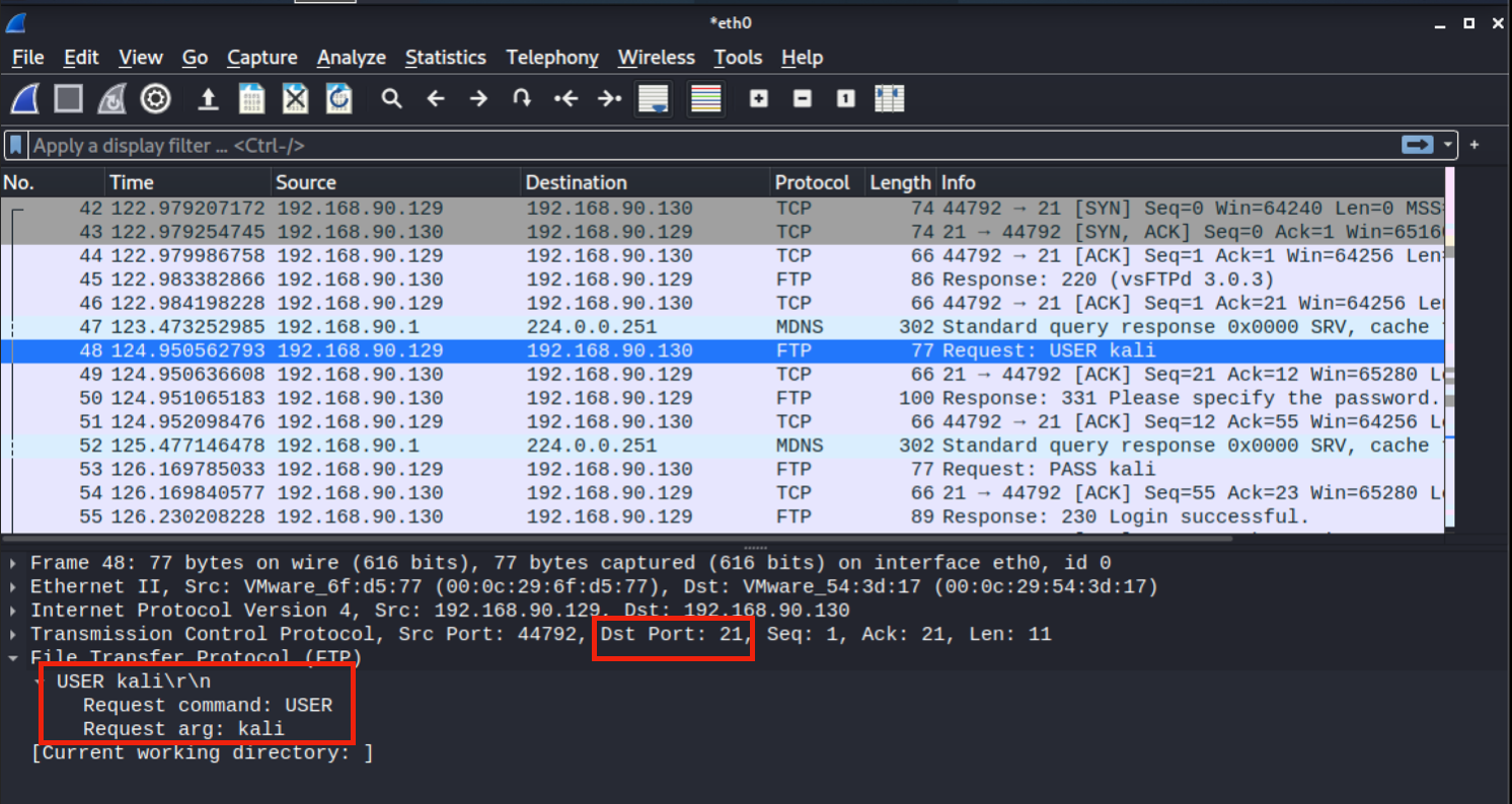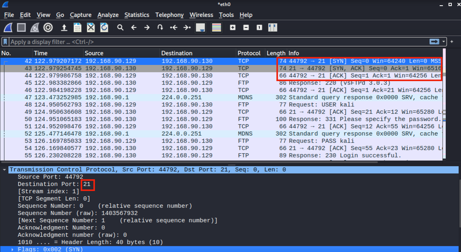 TCP 3 Way handshaking 확인 및 명령포트 확인