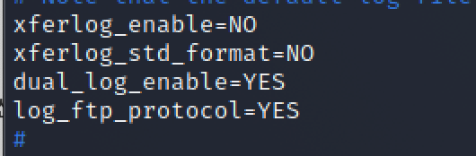 dual_log_enable = /var/log/xferlog 파일과 /var/log/vsftpd.log 파일 모두에 FTP 파일 전송 기록이 저장