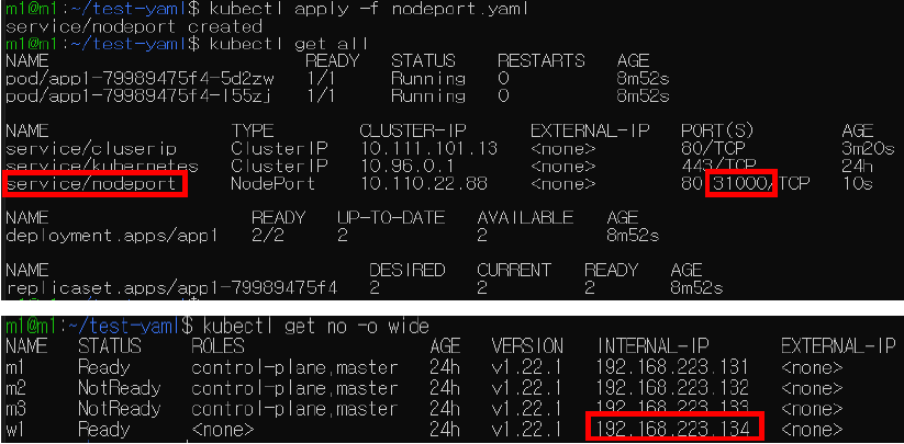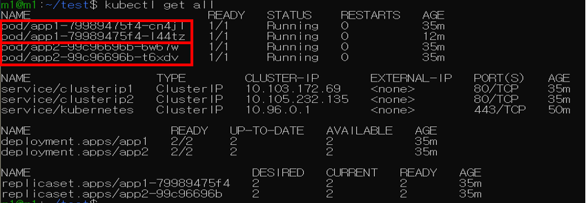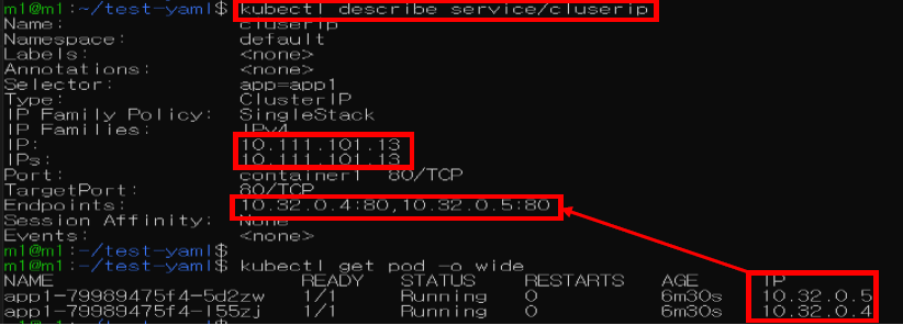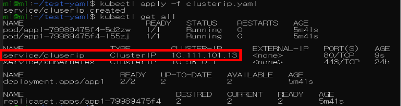 아래와 같이 Pod와 ClusterIP가 생성된 것을 확인