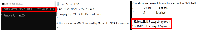 Domain기반 테스트를 위해 window hosts 파일에 Domain 설정