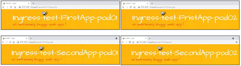 아래와 같이 Domain 기반 Ingress 접속된 것을 확인