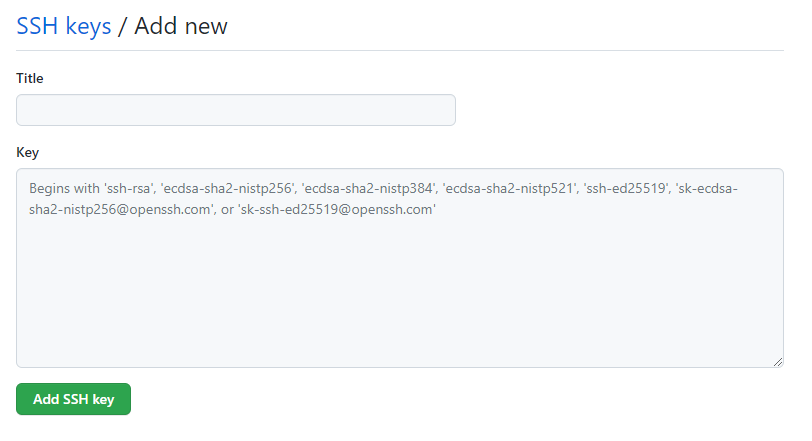title에는 아무거나 적고 key에 생성된 ssh key를 붙여넣기 해준다.
