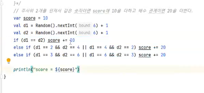 when 구문으로 d1과 d2 값에 따라 score에 점수를 더합니다: