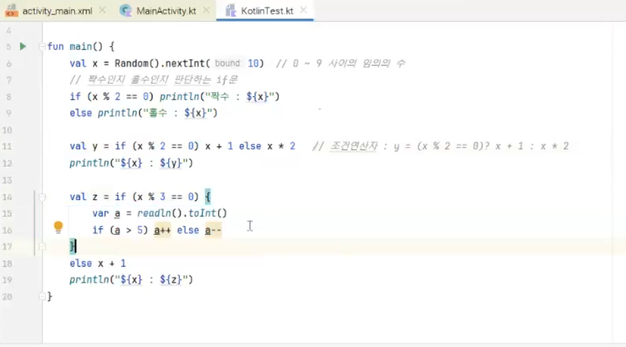 코틀린에는 if 수식이있음